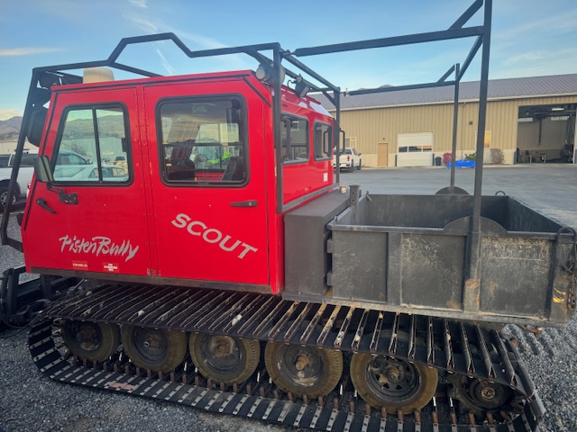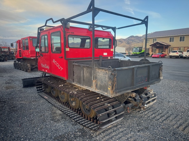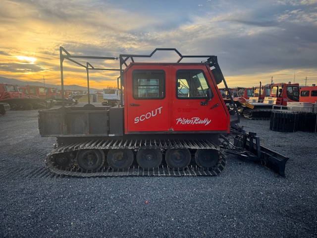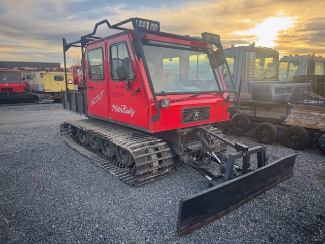 This Pistenbully Scout has a John Deere diesel engine, sunstrand hydrostatic drive, and a 6 way u blade for pushing piles of snow. It is equipped with 2 belt steel tracks.